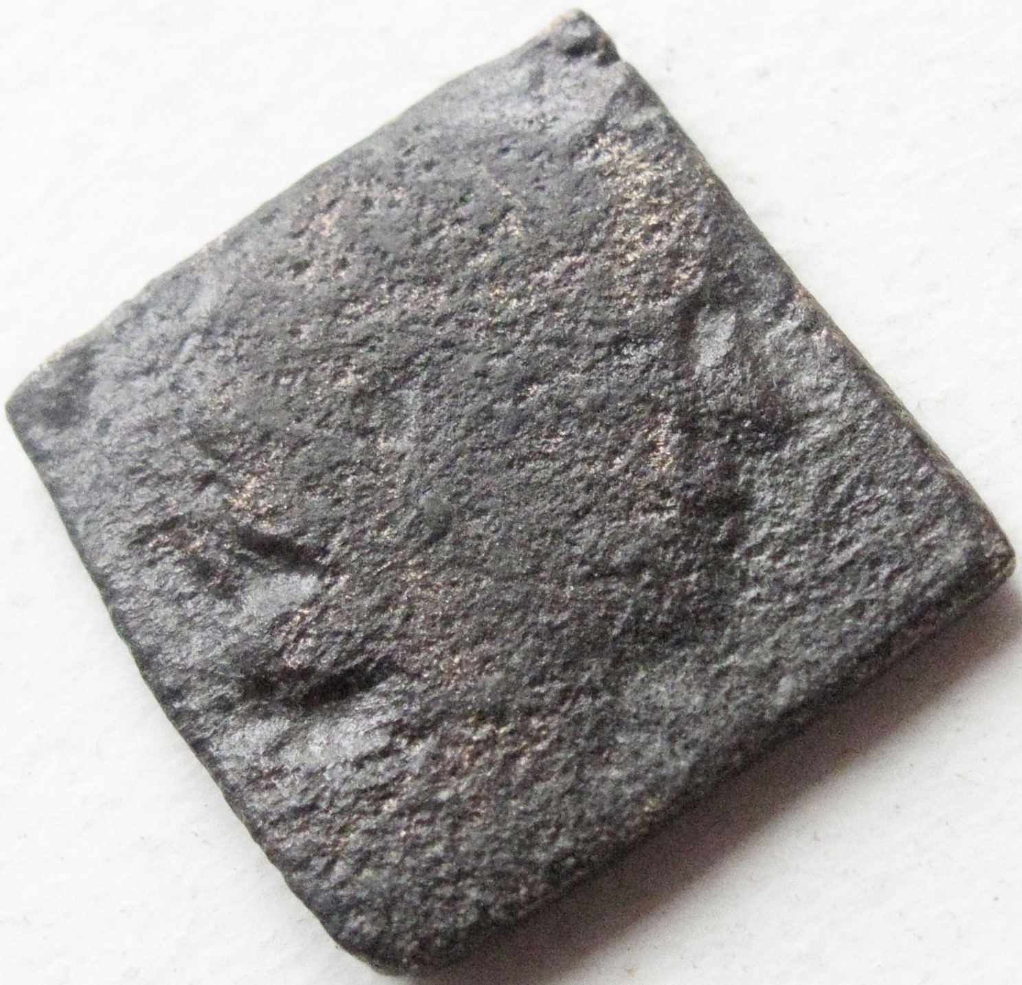 CPAI III/2: Made from a Roman or Roman Provincial coin; square in form with plain profile. On the obverse, imperial bust (empress?) in relief; on the reverse, standing figure r. Both sides partly erased. It may be a one-nomisma. Patinated.